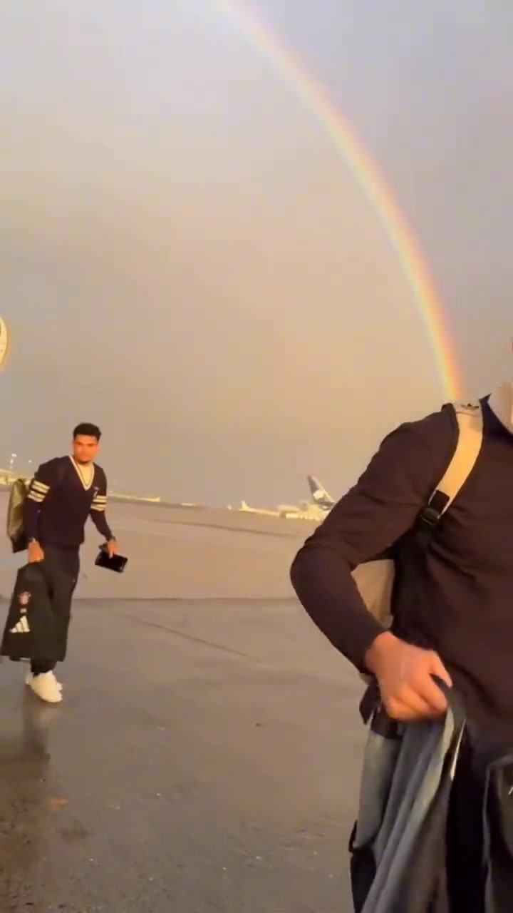 今晚好運(yùn)加持拜仁抵達(dá)巴黎時(shí)遇見落日彩虹