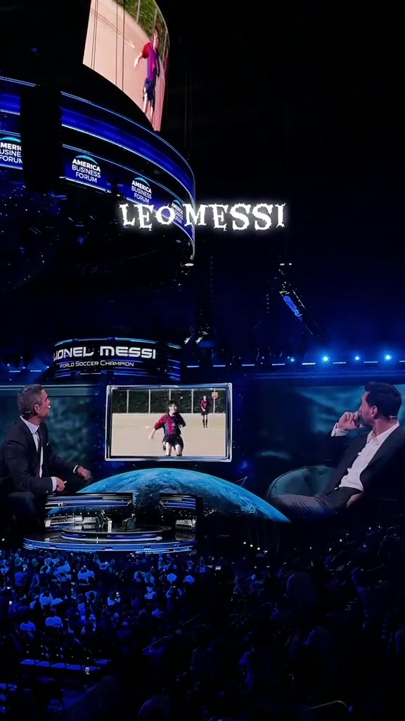 梅西在商業(yè)論壇上看自己的生涯高光臺(tái)下觀眾喊名字膜拜