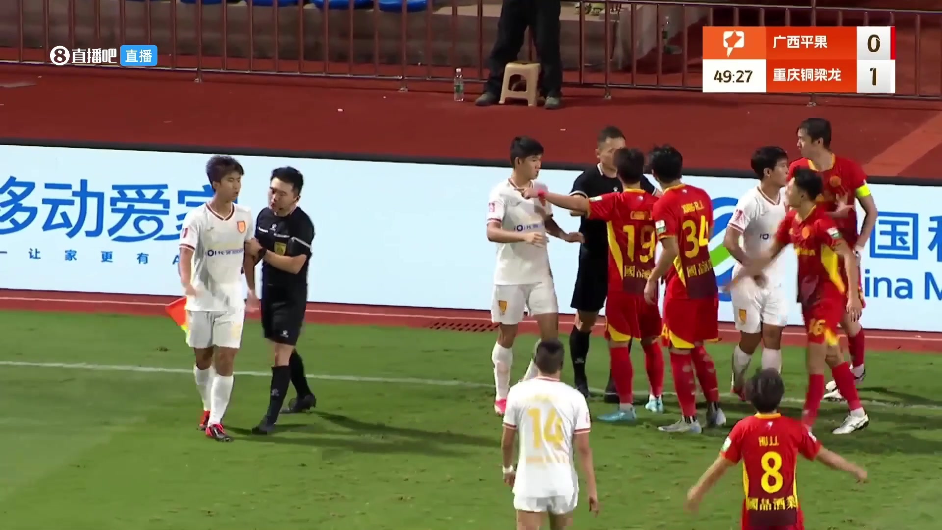 引發(fā)不滿銅梁龍球員把對方撞傷后攤手表示無辜裁判擋在中間
