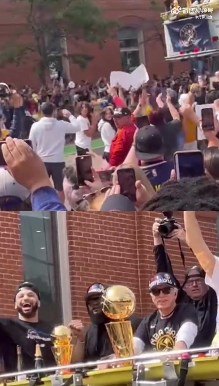 兩座金杯閃閃發(fā)光穆雷和約基奇奪冠游行上一人帶一座獎(jiǎng)杯