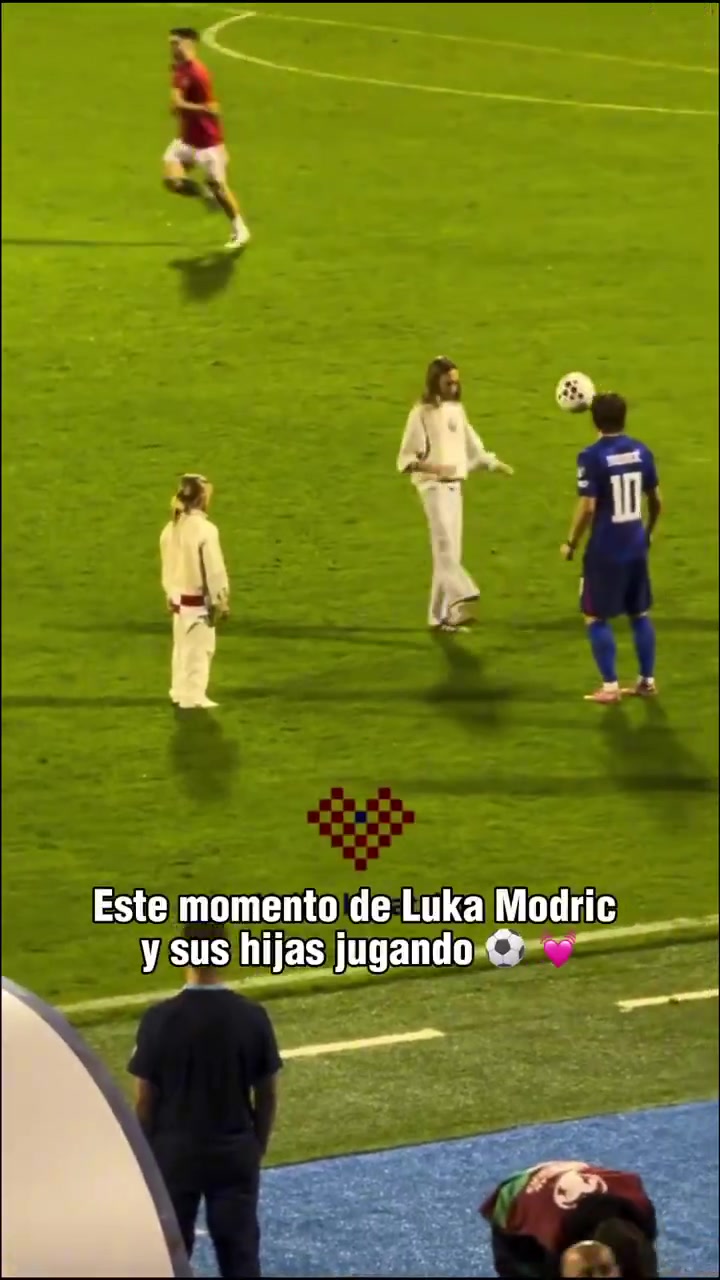 岳父大人莫德里奇在球場上教女兒顛球女兒看著比老爹高