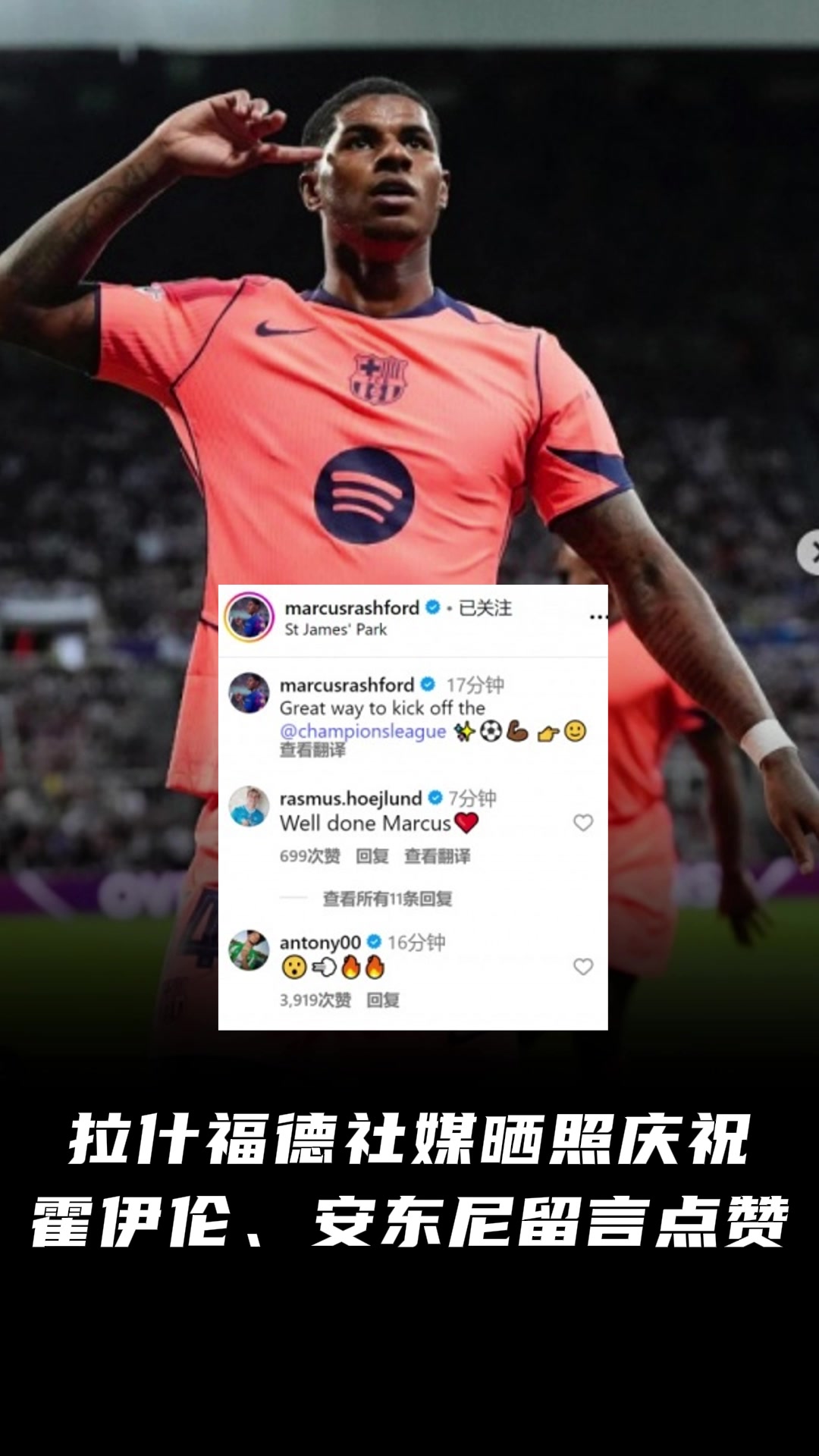 曼聯(lián)舊將散是滿天星拉什福德社媒曬照慶?;粢羵惏矕|尼點贊