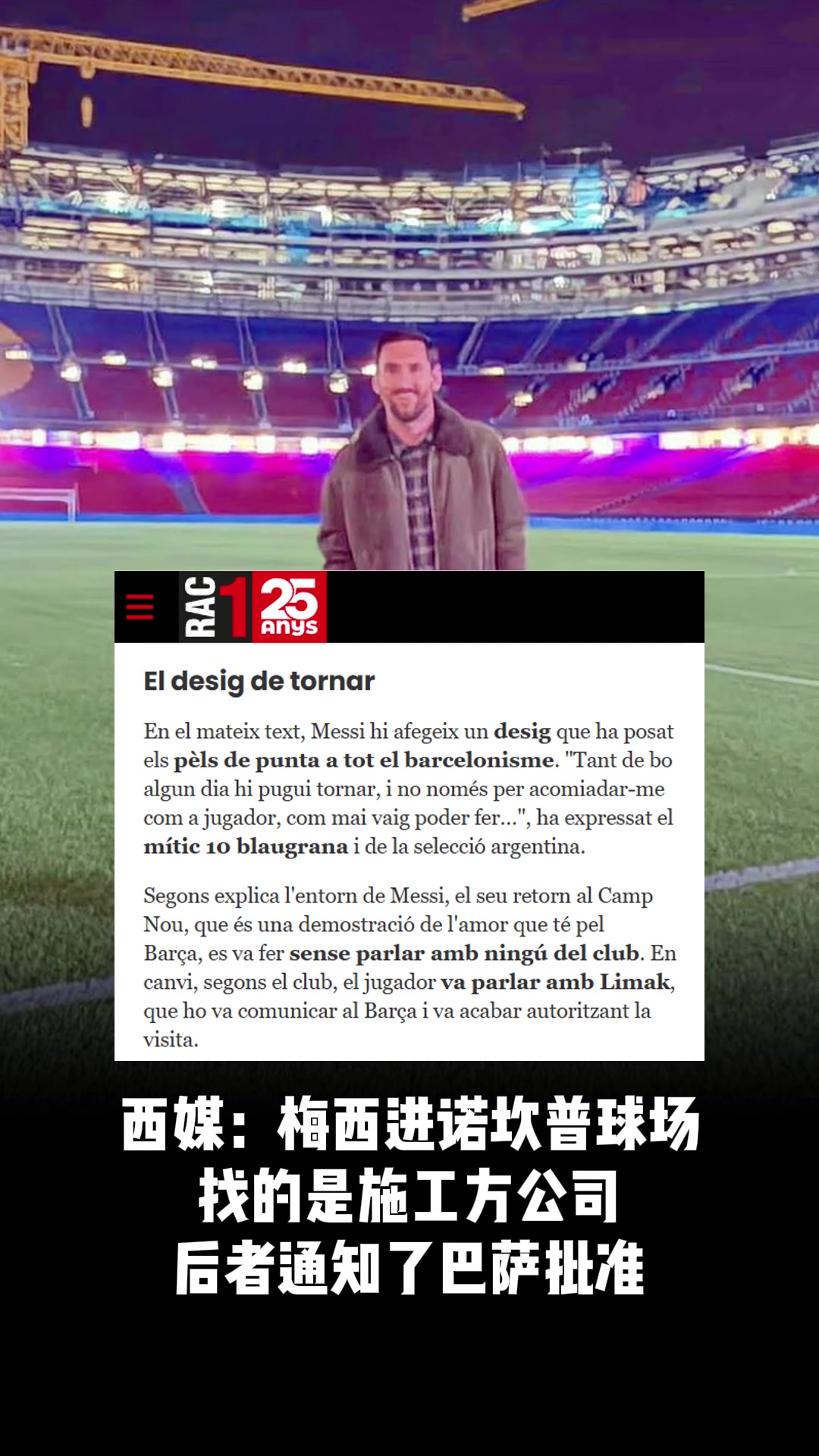 悄悄地梅西找施工方進(jìn)的諾坎普后者通知了巴薩批準(zhǔn)